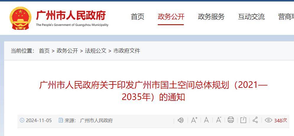 11月5日,广州市人民政府官网发布《广州市人民政府关于印发广州市国土空间总体规划(2021—2035年)的通知》