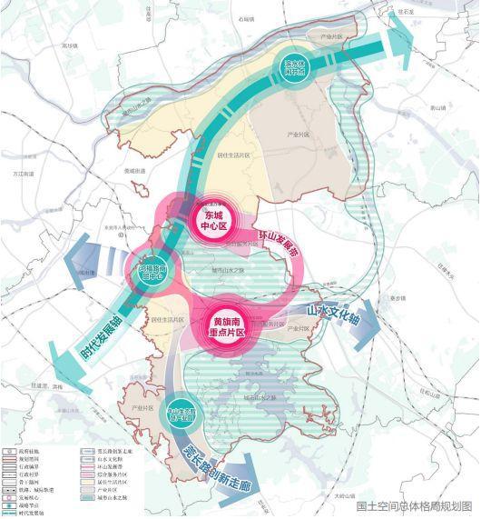 是指环绕黄旗山★,打造南北双中心。北中心为东城中心区,夯实成熟生活配套、体验式商业及金融服 一环双心 务等传统服务优势;南中心为黄旗南重点片区,发展文体休闲、生态体验及智慧研发等品质服务功能★。