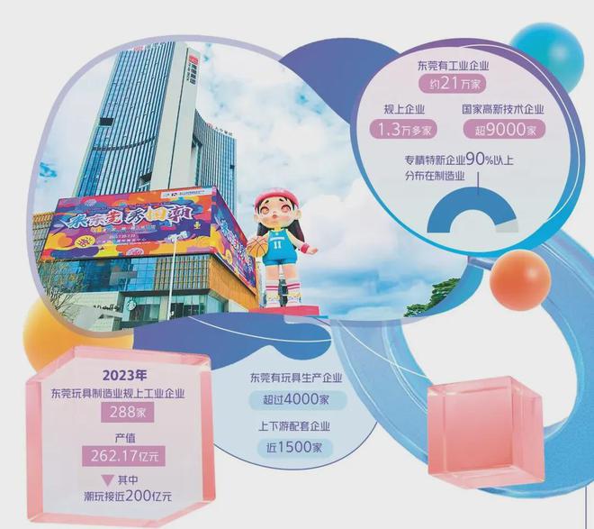 数据显示★,目前东莞拥有超过4000家玩具生产企业,近1500家上下游配套企业,是全国最大的玩具出口基地。截至2022年,东莞涉及潮玩生产的规上企业就有87家,工业总产值达到166★.57亿元。
