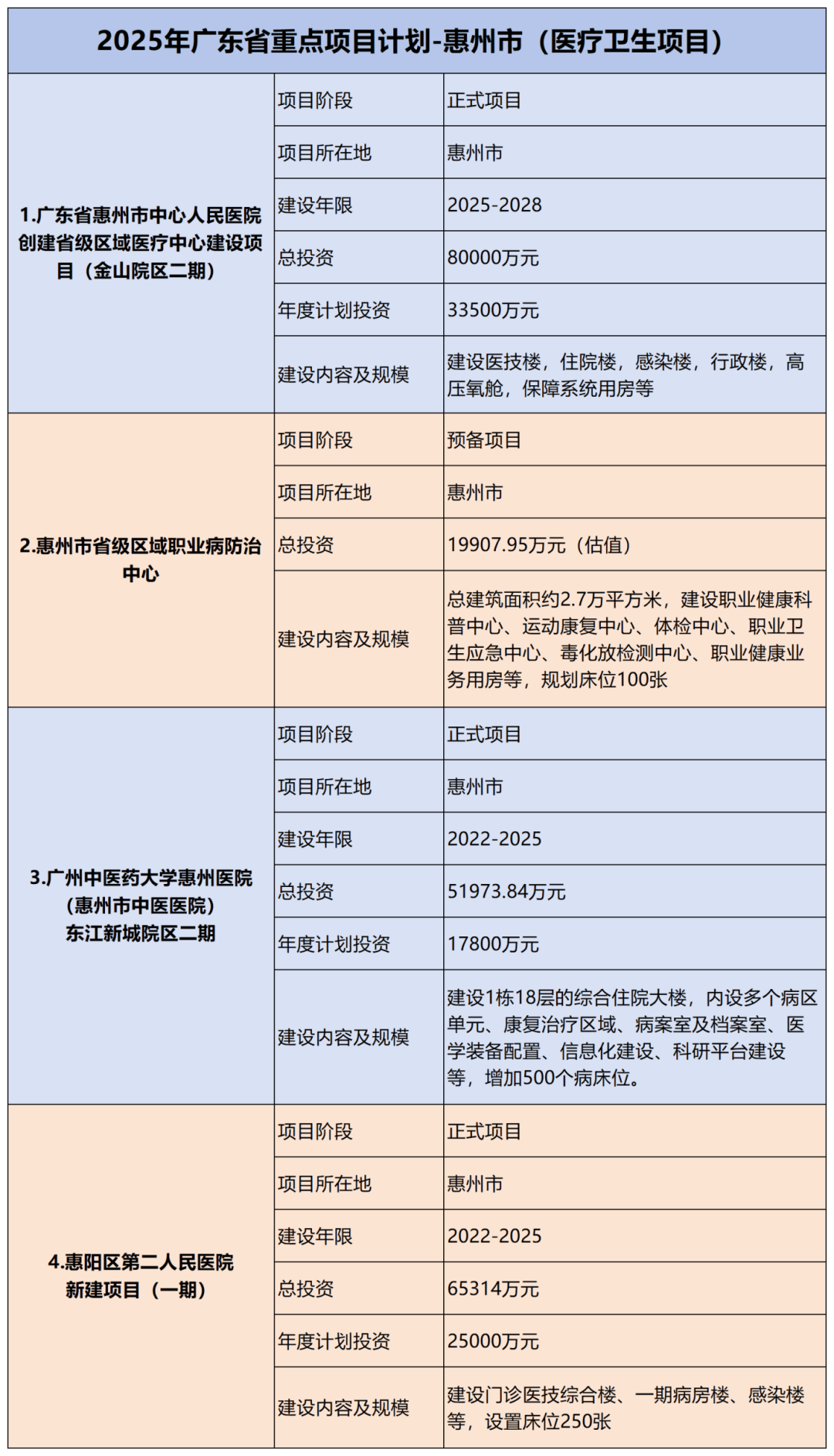 在医疗卫生项目方面★,惠州市中心人民医院金山院区二期也将在今年启动建设,而金山院区一期计划在今年建成运营。