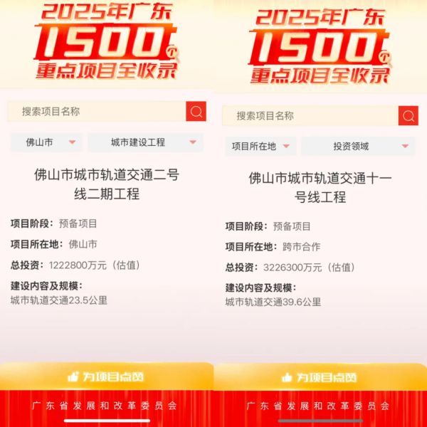 以上就是关于“重磅!2025年广东重点项目公布,佛山地铁4号线等有新进展”的相关分析,了解更多关于佛山新房★、佛山交通★、佛山楼盘、佛山地铁等详细情况的★,看房选房找房,欢迎上佛山楼盘网。