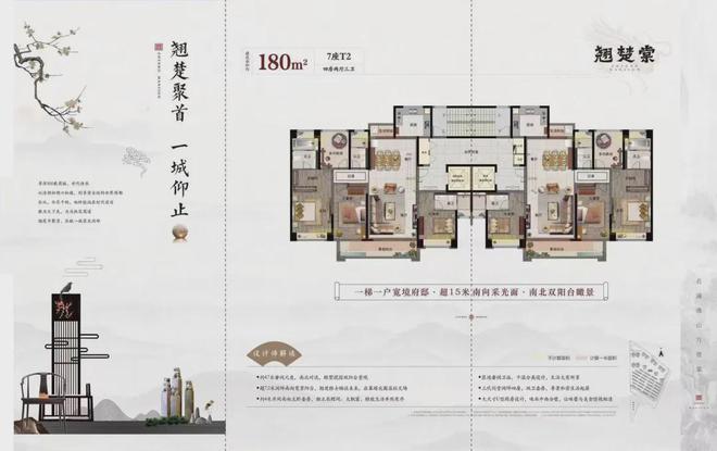 180㎡ (四房两厅三卫)约4★.7米奢阔尺度,南北对流★,瞰墅揽园双阳台景观超7.2米阔绰南向宽景阳台,翘楚雅士畅谈未来,启幕塔尖圈层社交场约4米开间南向主卧套房,独立衣帽间、大飘窗,雅致生活井然有序