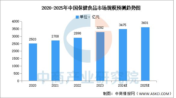 近年来,我国老龄化人口不断增加★,居民健康意识逐渐增强★,保健食品需求日益旺盛★,市场规模增长稳定★。中商产业研究院发布的《2025-2030年中国保健食品行业调查及发展前景分析报告》显示,2023年中国保健食品市场的规模约为3282亿元,同比增长8★.29%。中商产业研究院分析师预测★,2024年保健食品销售额将进一步增长至3475亿元,2025年将超过3600亿元。