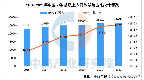 我国老年人口规模庞大★,自2000年迈入老龄化社会之后★,人口老龄化程度持续加深★。根据中商产业研究院数据库显示,2023年中国60岁及以上人口29697万人,占全国人口的21.1%★。